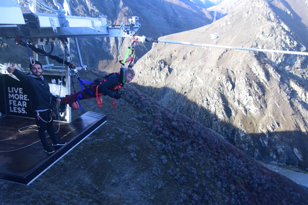I like those pop-up funfairs that are a bit rickety, bit rusty, and you find yourself wondering “is this actually safe?” For comparison I have included the footage of my Peru jump, which felt very much like the travelling-carnie equivalent as opposed to the ultra safety conscious NZ bungee experience. As an objective measure of how terrifying I found each, consider the very un-manly scream I give when falling from the cage in Peru, as opposed to the rather lame sigh I make being launched on the NZ catapult.
