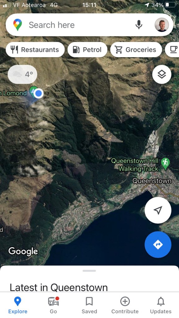 Back in Queenstown and feeling that I was owed some trekking I decided to try Ben Lomond (BL) which overlooks Queenstown. The Department of Conservation (DOC) advised not to attempt climbing in winter unless equipped with ice axe, crampons etc. I resolved to not to be an idiot, but to see how I got on without said equipment.